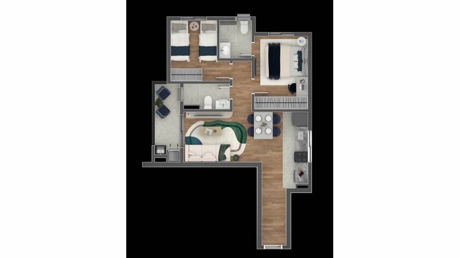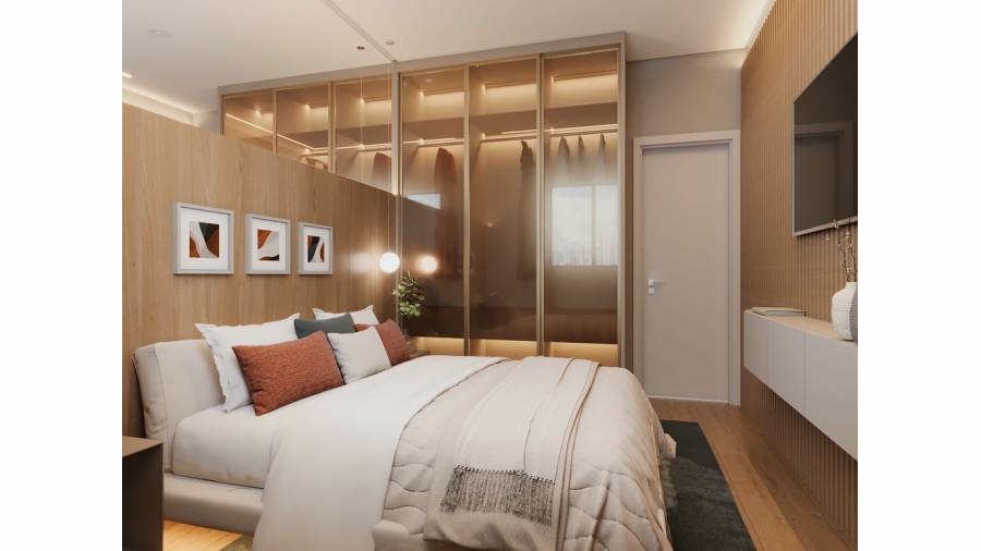 As unidades oferecem diferenciais como churrasqueira, varanda gourmet, espera para ar-condicionado, forro em gesso, closet, porta codificada e home office, garantindo conforto e praticidade.